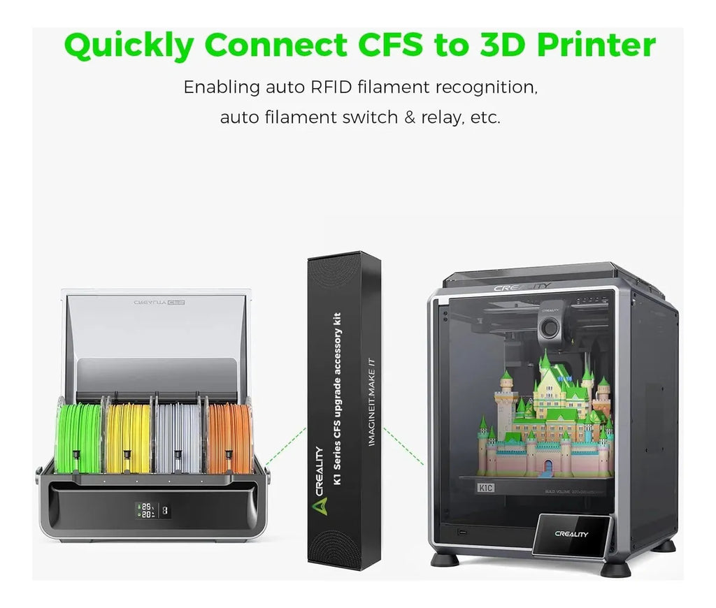 Conexão Rápida ao CFS: Com o novo extrusor e componentes, o kit permite o reconhecimento automático de filamento RFID e a troca suave de filamento. Você também terá fácil acesso ao sistema de relé para melhor controle geral.